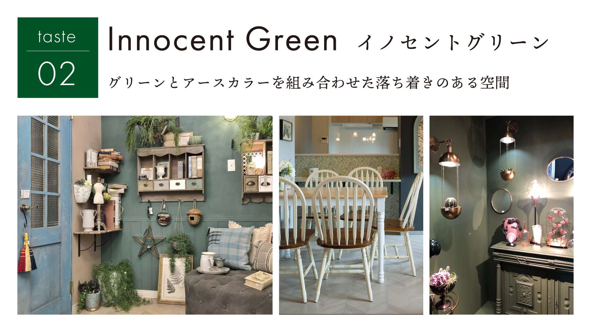 グリーンとアースカラーを組み合わせた落ち着きのある空間。最新のインテリアと合わせて、海外のお家のような雰囲気に。ナチュラルテイストが好きな方や海外インテリアが好きな方におすすめ。